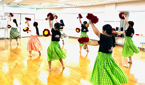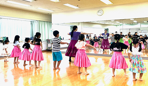 フラ(踊り)を通して体の柔軟性・リズム感を養い、ハワイ語も学べます。同時に笑顔や、思いやりの心(アロハ)を育てます。男児(ケイキカネ)も学ぶことができます。イベントの出演もあります。